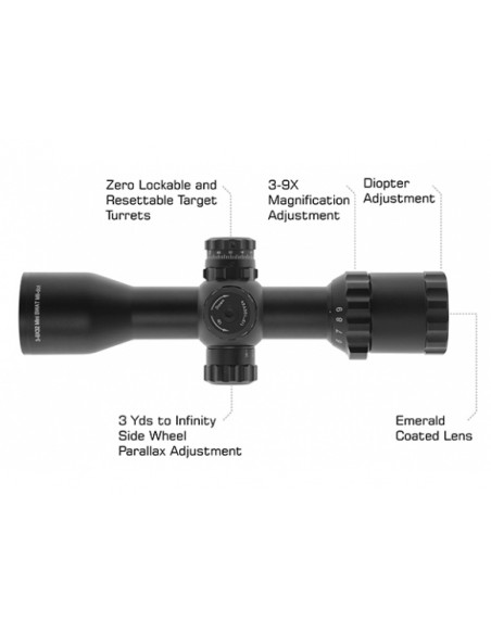 Duża odległość od oka (max. 106 mm), zmienne powiększenie, szerokie pole widzenia oraz precyzyjna regulacja paralaksy (od 2,7 m do nieskończoności) powodują, że optyka ma wszechstronne zastosowanie i może być montowana na różnego rodzajach broni.
