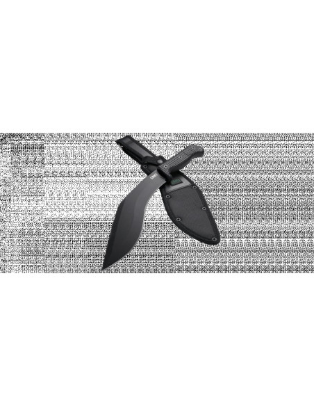 Nóż inspirowany kultowymi nożami nepalskich wojowników - kukri. Charakterystyczne zakrzywienie ostrza służy do efektywnego przekazywania energii kinetycznej na cel podczas wykonywania cięć.