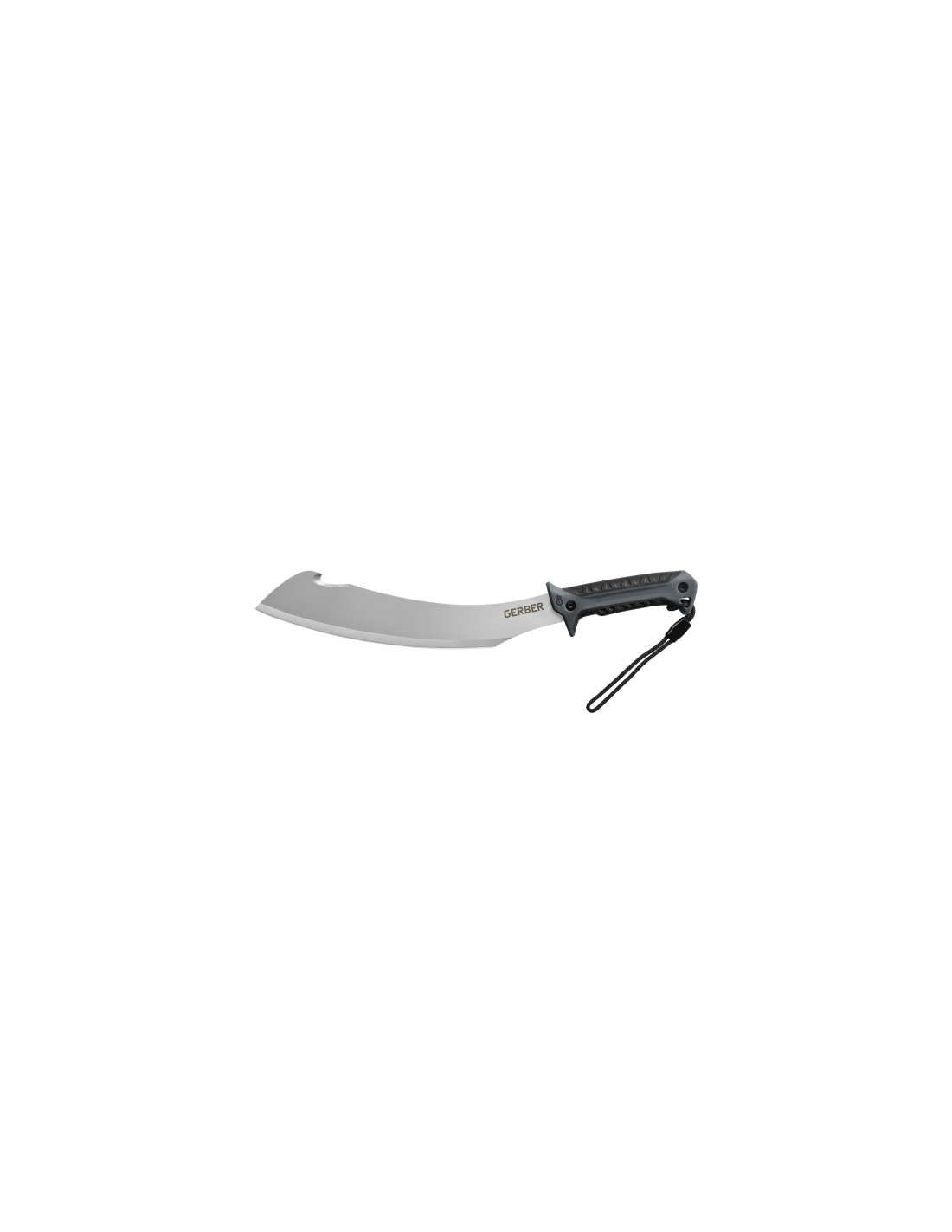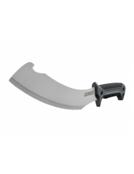 Gerber Broadcut to ciężka maczeta ze stali nierdzewnej, wyposażona w funkcjonalny hak do wycinania korzeni i pnączy oraz wygodną antypoślizgową rękojeść