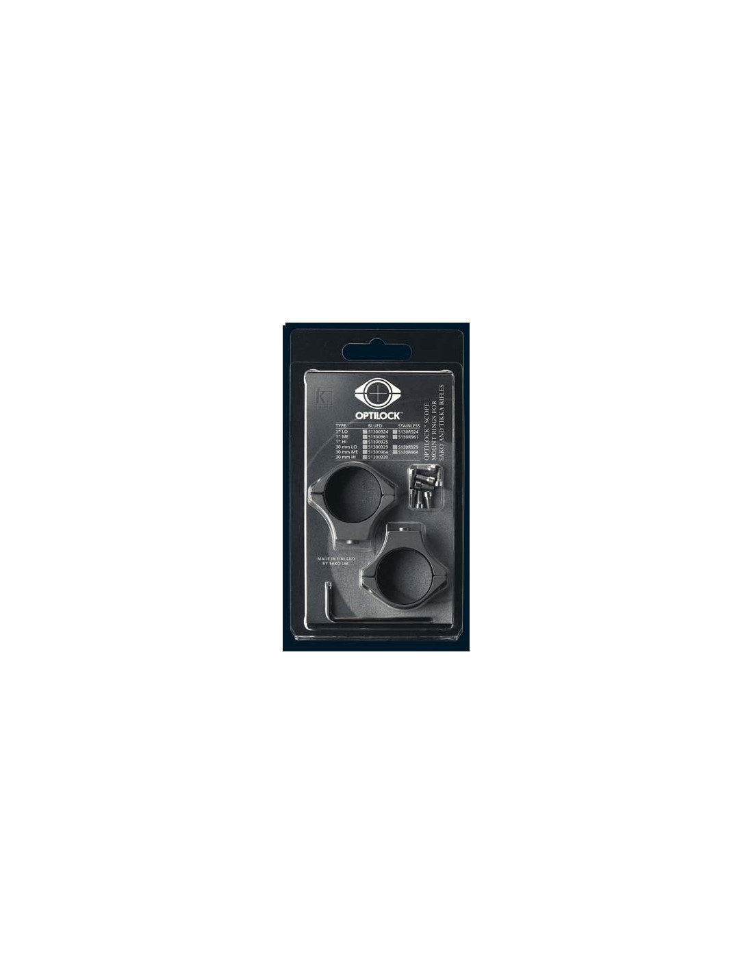 Montaże Ticca Optilock są dostępne dla lunet o średnicy tubusu 26 i 30 mm, oraz w trzech opcjach wysokości bazy. Są oksydowane, albo wykonane ze stali nierdzewnej. Pasują do każdej lunety.