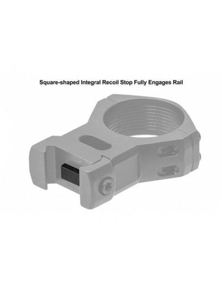 Stalowa, precyzyjna konstrukcja pierścieni gwarantuje pełną osiowość montażu lunety, stabilne utrzymanie zera oraz odporność na odrzut broni.