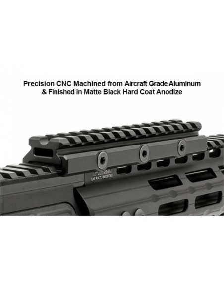 Podwyższenie Leapers to szyna podwyższająca o 13 gniazdach, przeznaczona do montażu przyrządów optoelektronicznych na karabinkach AR-15 flat top.