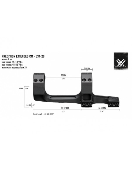 Montaż Vortex Precision Extended 34 mm 20 MOA to prosty i pewny sposób zamontowania optyki na broni palnej.