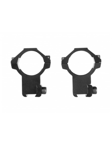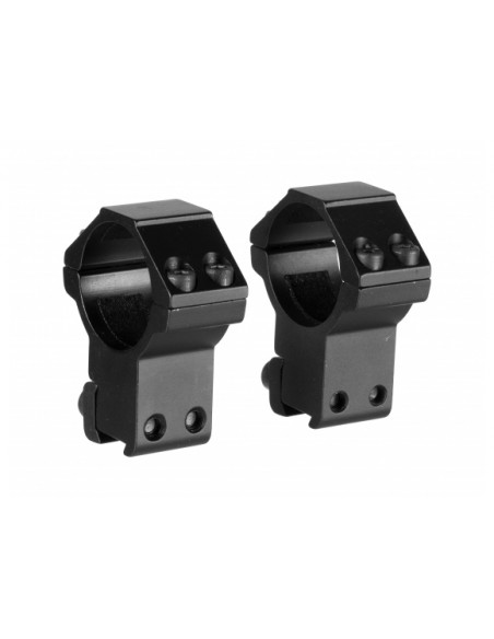 Aluminiowy montaż dwuczęściowy przeznaczony do wiatrówek, replik ASG oraz broni małokalibrowej. Wewnętrzna część obejmy wyściełano taśmą antypoślizgową, jedna z obejm wyposażona w kołek stopujący. W zestawie trzy imbusy do montażu.