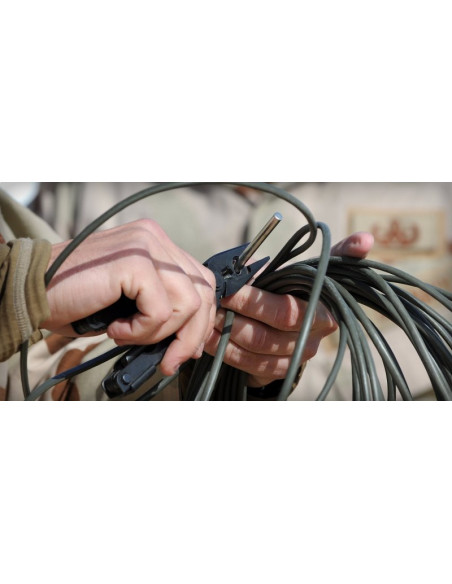 Wykonany ze stali nierdzewnej, został w całości pokryty czarną, antyrefleksyjną powłoką, która zapewnia całkowity brak refleksów świetlnych w słoneczny dzień na polu walki. Opatentowany system otwierania szczypiec kombinerek jedną ręką może Ci uratować życie, kiedy jesteś na celowniku wroga.