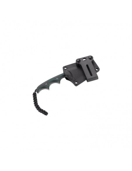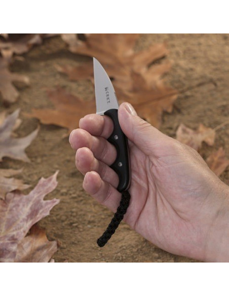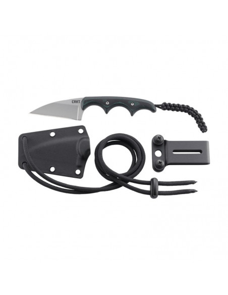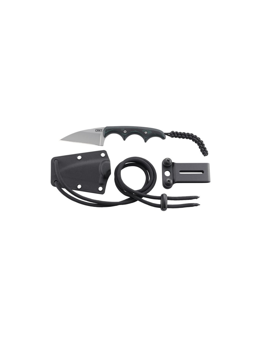 Oto bardzo mały i lekki nóż, który zapewnia zaskakujący komfort i kontrolę dzięki niezwykłej geometrii, konstrukcji full-tang, 2 calowej głowni typu Wharncliffe, zagłębieniom na palce, rękojeści z ręcznie kształtowanej Micarty.
