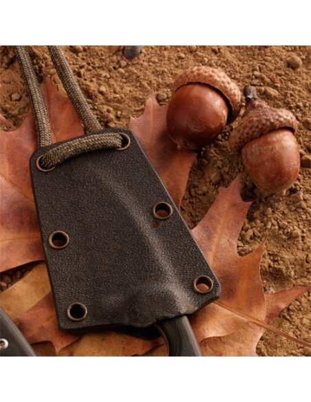 Minimalist dostarczany jest z pochewką z zytelu i linką do noszenia na szyi. Ponieważ nóż wraz z pochwą waży jedynie 45 gram może być używany jako nóż EDC, którego obecności praktycznie nie zauważysz.