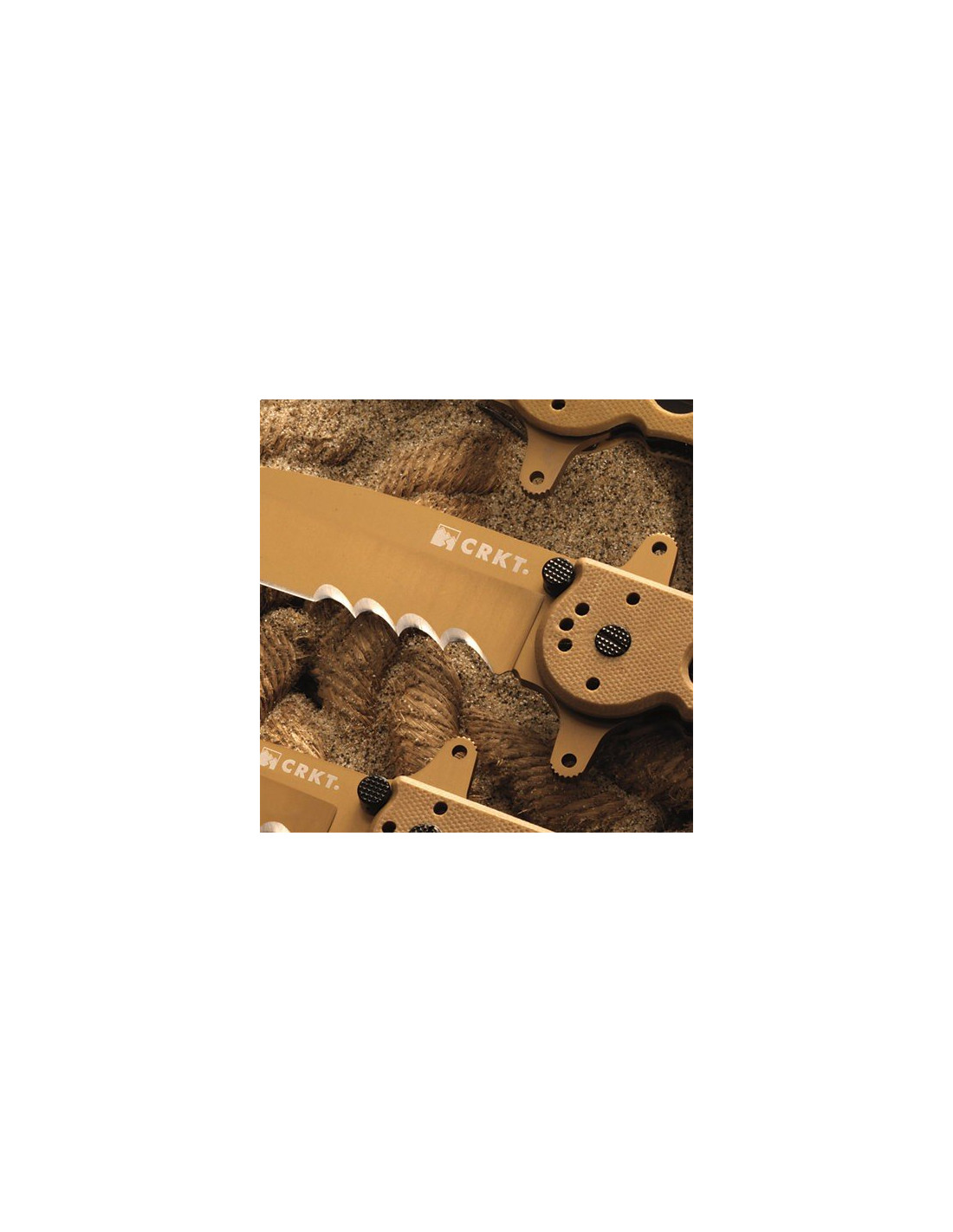 Ostrze, rama oraz pozostałe elementy zostały pokryte nieodbijającą światła taktyczną powłoką w kolorze piaskowym. Ostrze pokryte jest warstwą azotku tytanu dla zwiększenia odporności na rdzę. Znak rozpoznawczy Kit'a - podwójny kołek na ostrzu dostępny jest w każdym nożu serii. Otwieranie i zamykanie noży jedną ręką przebiega gładko i sprawnie.