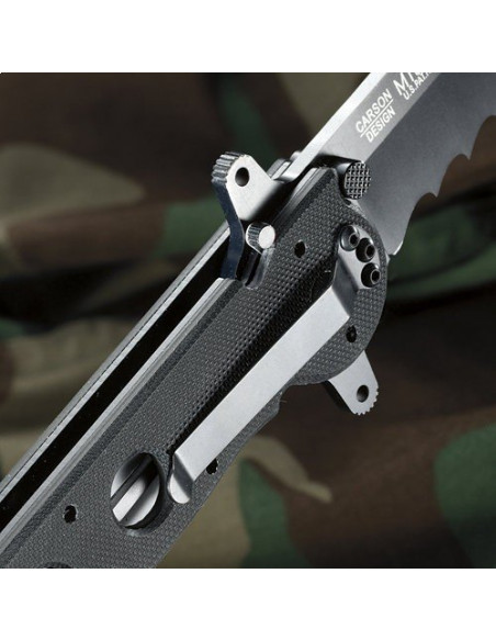 Noże z tej serii łączą w sobie unikalny design serii M16 Carsona oraz spełniają wymagania wojskowych specjalistów od wyposażenia. Zastosowano w nich ostrza typu Tanto z podwójnym szlifem ze względu na ich dużą wytrzymałość. "Otwarta" budowa pozwoliła na zastosowanie podwójnego flipera, dzięki czemu otrzymaliśmy podwójny jelec - rzadko spotykany w nożach składanych.
