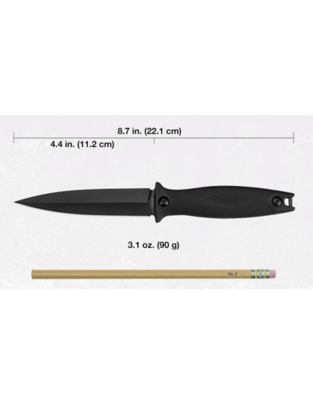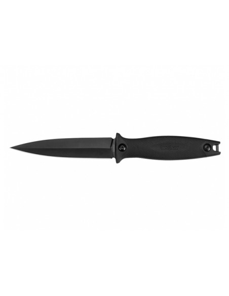Smukły profil klingi to klasyczny dagger (sztylet) z obustronną krawędzią tnącą. Dzięki zastosowaniu mocnego sztychu, wklęsłego szlifu oraz niemal prostej krawędzi tnącej, nóż ma wysoką zdolność do penetracji i równie dobrze radzi sobie z cięciem.