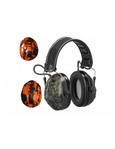 Peltor SportTac ziel-pom w wersji kamuflaż to aktywne ochronniki słuchu zapewniające inteligentną ochronę przed hałasem, możliwość podłączenia urządzeń zewnętrznych audio oraz funkcję regulacji poziomu tłumienia.