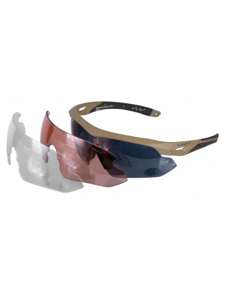 W zestawie znajdują się 3 wymienne szybki, umożliwiając dopasowanie okularów do warunków oświetleniowych oraz specyfiki działań.