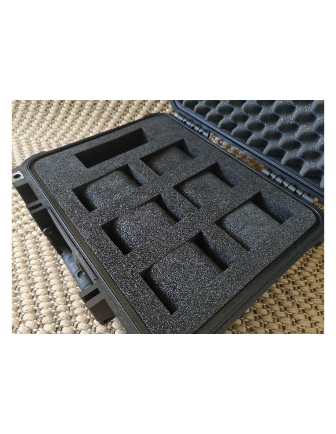 Skrzynka wystawiona na aukcji jest w kolorze czarnym z wypełnieniem ciętym w twardej piance. Wymiary przegródek to 50×85 mm. Poduszka jest cięta z twardej gąbki, jej obwód wynosi 17,8 cm. Poduszki siedzą ciasno, nie przemieszczają się.