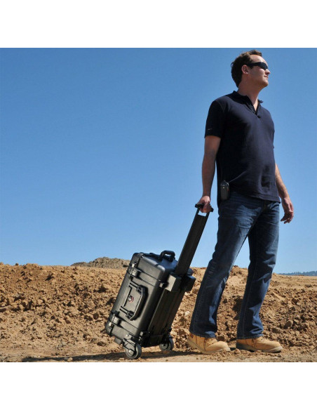 Skrzynia Peli™ 1560 cechuje się niesamowitą wytrzymałością, wodoszczelnością i pyłoszczelnością. Jest wyposażona w zawór wyrównujący ciśnienie powstające przy przemieszczaniu się pod wodą lub samolotem, dodatkowo uszczelniony wkładką z GORE-TEXu. Skrzynia jest lekka i wytrzymała, co zawdzięcza trójwarstwowej strukturze. Zamykana na dwustopniowe zatrzaski z możliwością zabezpieczenia jej kłódką. Wszystkie metalowe części wykonane są ze stali nierdzewnej. Zawiasy posiadają dodatkowe ożebrowanie chroniące je przed uszkodzeniem. Krawędzie skrzynki są zaokrąglone co rozprasza siłę uderzenia. Są również dodatkowo wzmocnione. Skrzynka występuje bez wypełnienia, z wypełnieniem gąbkowym pick&plug oraz z wypełnieniami wykonanymi na zamówienie. Można również zainstalować specjalny panel montażowy, a także organizer w wieku skrzyni. Skrzynia wyposażona jest w solidne kółka transportowe z łożyskami oraz uchwyty górny, boczny i do ciągnięcia. Dożywotnia gwarancja producenta na jakość wykonania.
